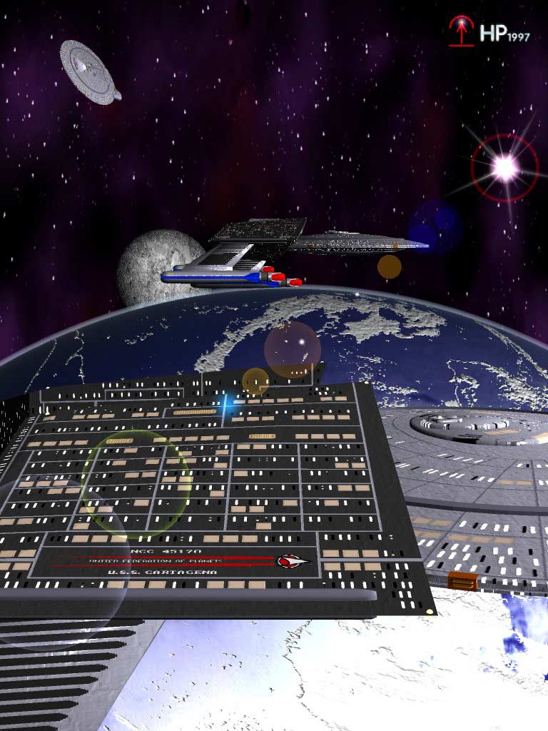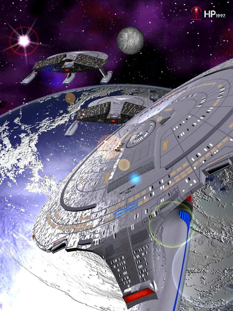 The U.S.S. Rhea meeting two other ships (Brixton- and Cartagena-Class) in orbit of an Ice-Planet.